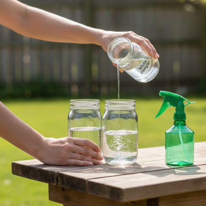 I decided to try a simple mixture that many gardeners recommend: equal parts white vinegar and water. The smell alone usually encourages ants to move elsewhere, and vinegar breaks up the scent trails they follow so they cannot fully rebuild their colony in the same place.