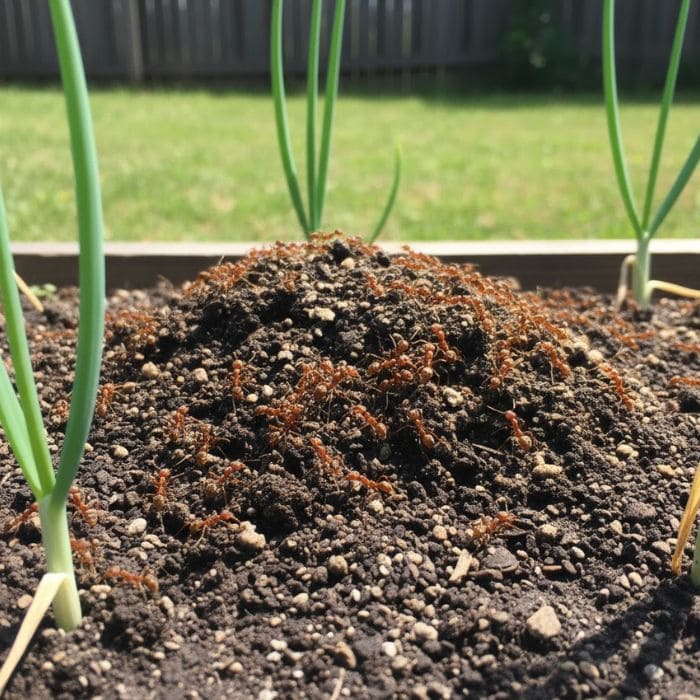 The ants were not eating the onions, but their tunneling was damaging the root zone and weakening the structure of the bed.