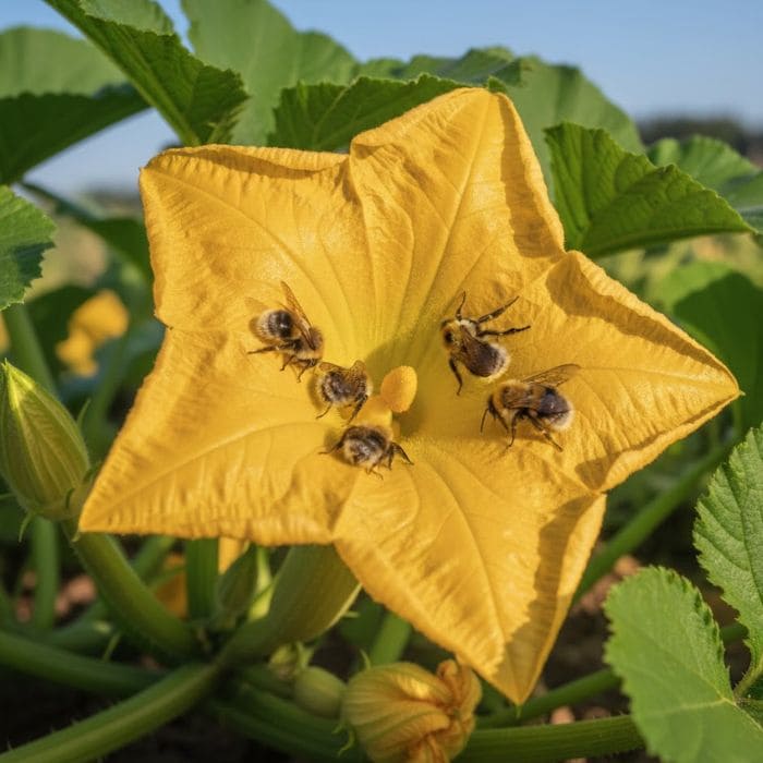 By mid-season, I began seeing six to eight bumblebees working the same section of the garden at once, especially around tomatoes, squash, and sunflowers. In early mornings, when temperatures were still cool, bumblebees were often the only pollinators active.