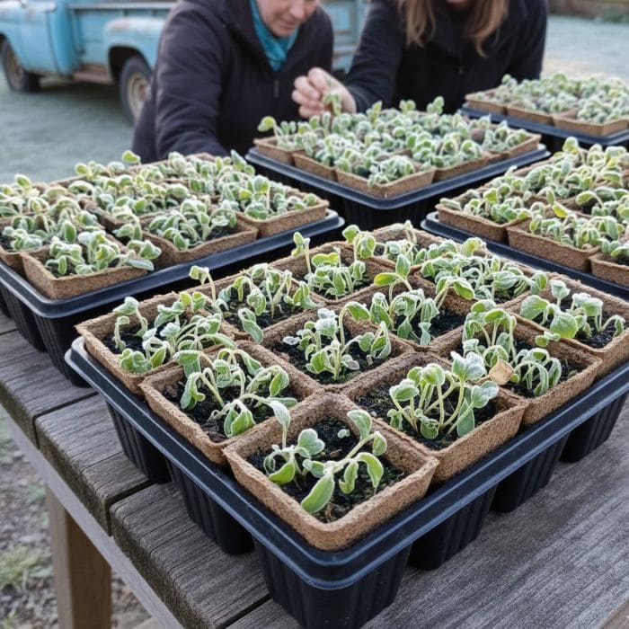 She taught me how to revive frost-kissed plants using warm water, gentle sunlight, and protective covers for the next few nights. We carried my trays into the kitchen so they could slowly acclimate indoors.